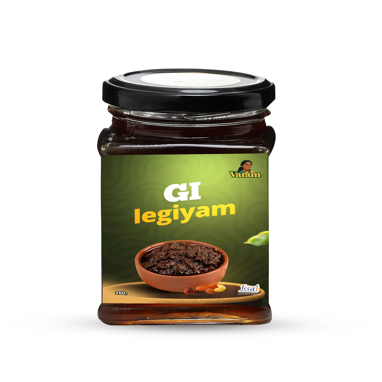Experience the traditional power of Varam GI Legiyam, a carefully prepared herbal formulation made with ginger, garlic, premium nuts, dates, figs, karupatti (palm jaggery), and sesame oil. This time-honored blend is rich in antioxidants and natural bioactive compounds that help strengthen immunity, improve digestion, and support metabolic balance. The warming properties of ginger and garlic combined with the nourishing richness of nuts and dry fruits make this legiyam a wholesome supplement for daily wellness. Gentle yet effective, it helps reduce bloating, enhance gut comfort, and promote overall vitality.
